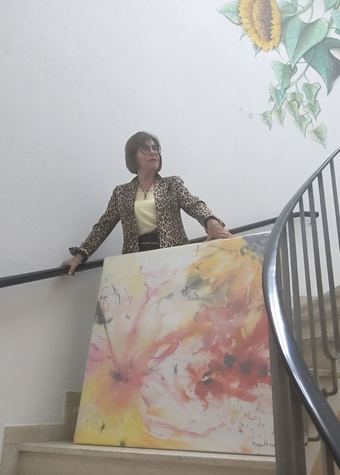 Ausdruck zu bringen. Ganz im Sinne der intermedialen Kunsttherapie erfüllt es sie mit Freude, wenn sie Hindernisse im Malprozess überwinden kann.