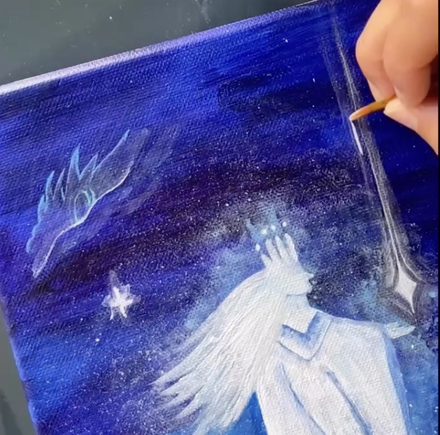 meditative state, allowing the characters, light and cosmic elements to gradually reveal themselves on the canvas.